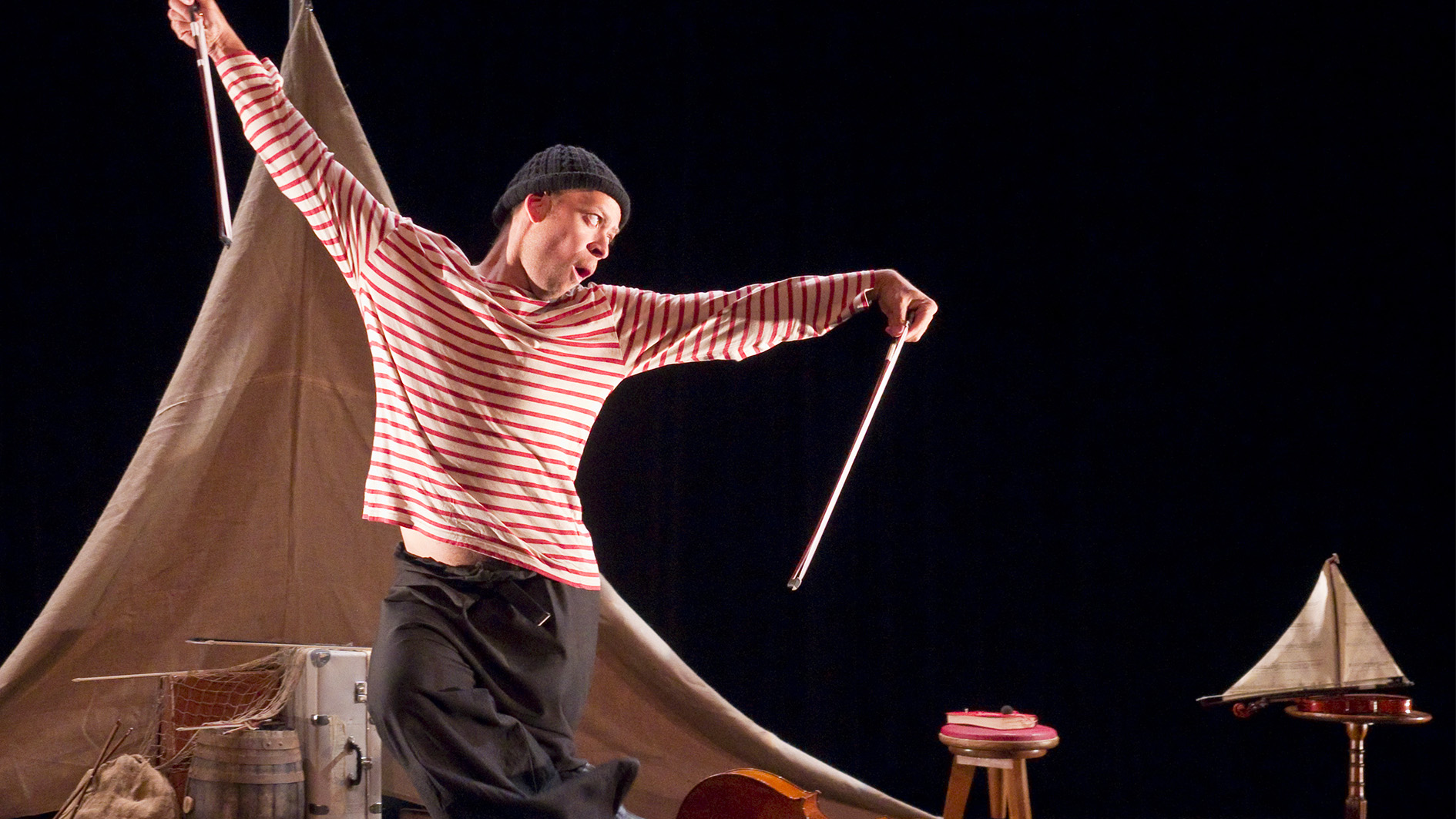 Complètement givré, il passe du violoncelle à la perceuse électrique, des balles aux archets, de la magie aux arts martiaux. Ce personnage excentrique nous montre bien qu’il en faut parfois peu pour être heureux comme un poisson dans l’eau.
